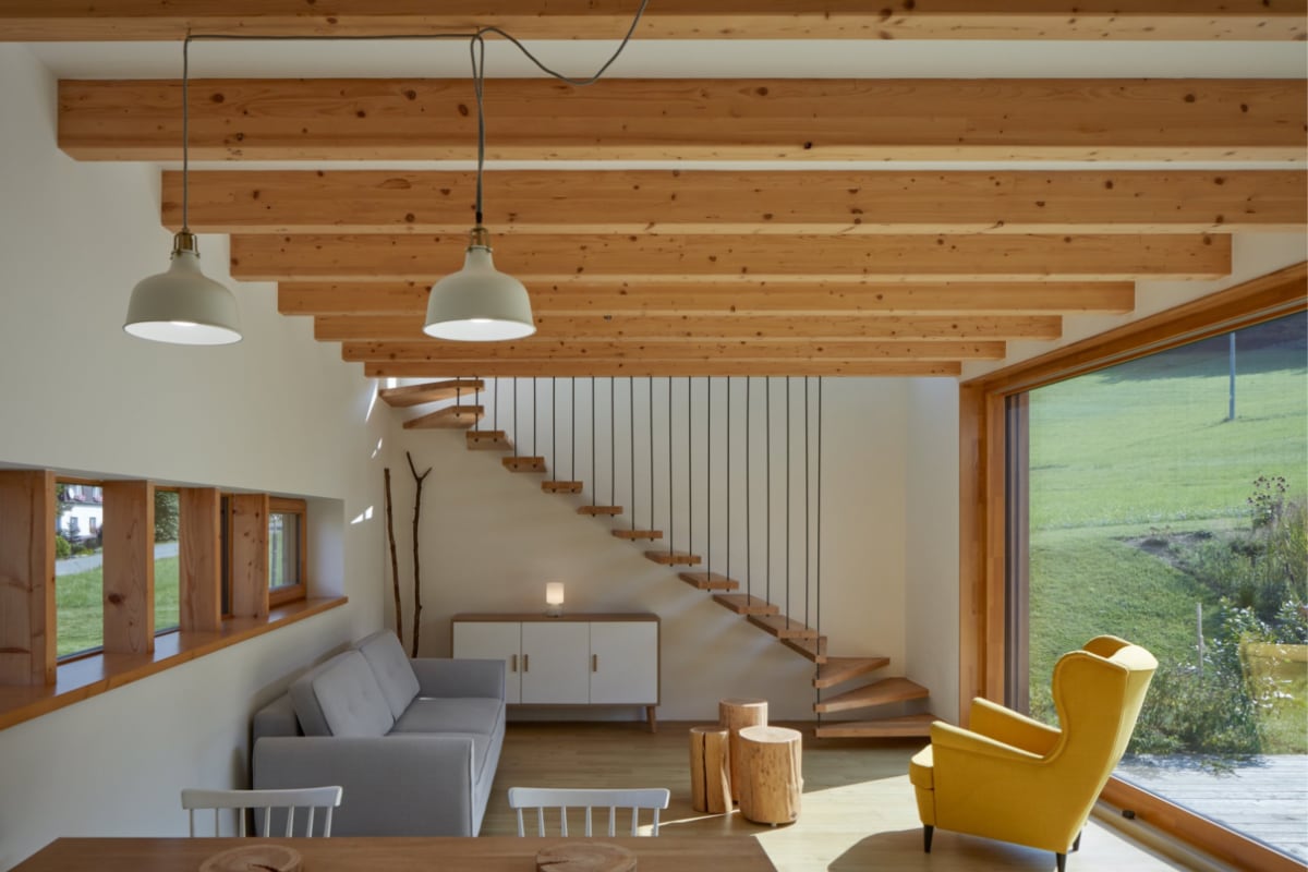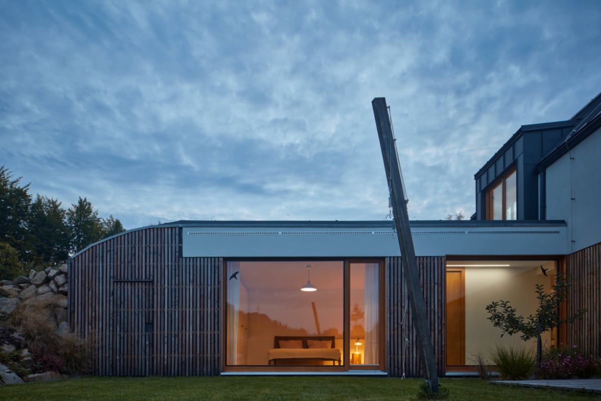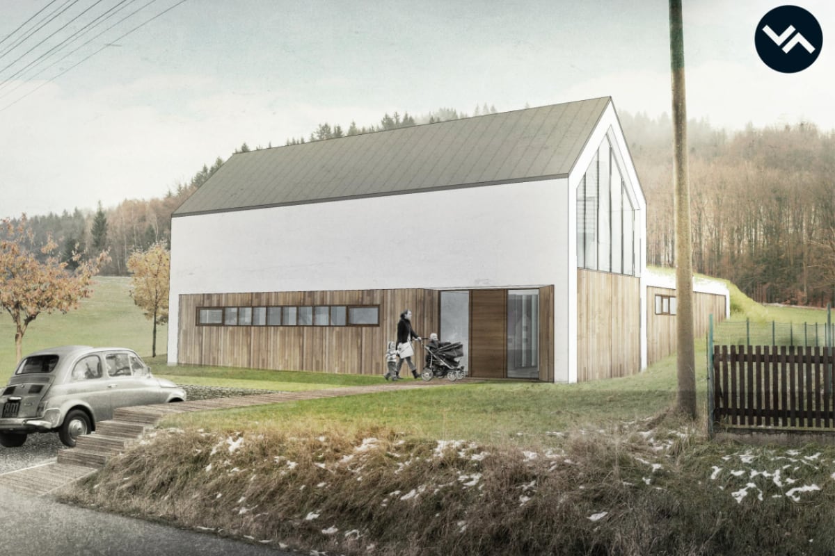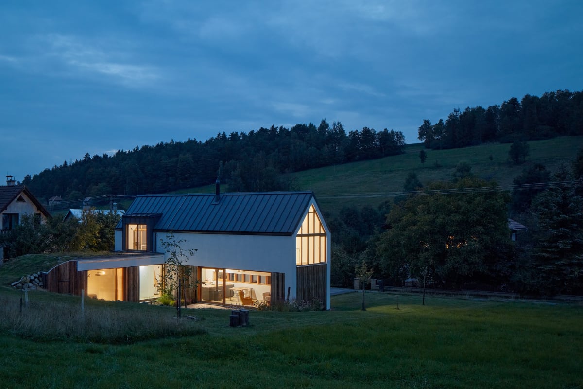 Návrh a realizace rodinného domu pro mladý manželský pár. Moderní dřevostavba zasazená do malebné krajiny Valašska.