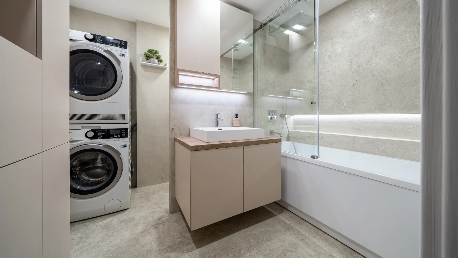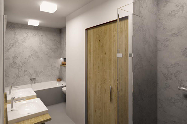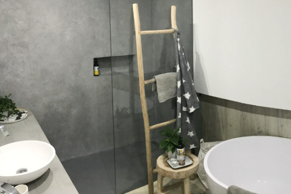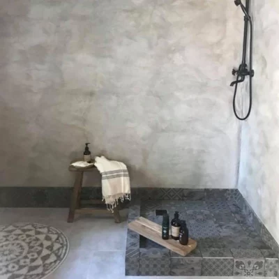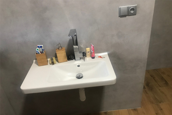 Všude tam dosáhnete s betonovou stěrkou do koupelny moderního povrchu stěn. Beze spár a přebytečných nepraktických spojů. Moderní řešení povrchových úprav v podobě betonových stěrek v koupelně oceníte také pro jejich vlastnosti.