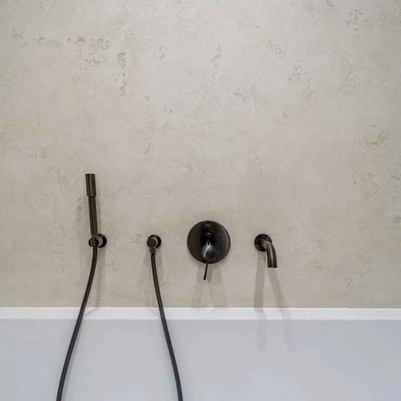 Ano, betonovou stěrku lze bez problémů aplikovat i za vanu. Díky finálnímu ochrannému voděodolnému laku je povrch odolný vůči vlhkosti i stříkající vodě. Důležitá je ale správná aplikace všech vrstev a zatmelení přechodů mezi vanou a stěrkou (např. protiplísňovým silikonem, nebo pur tmelem, který má delší životnost).