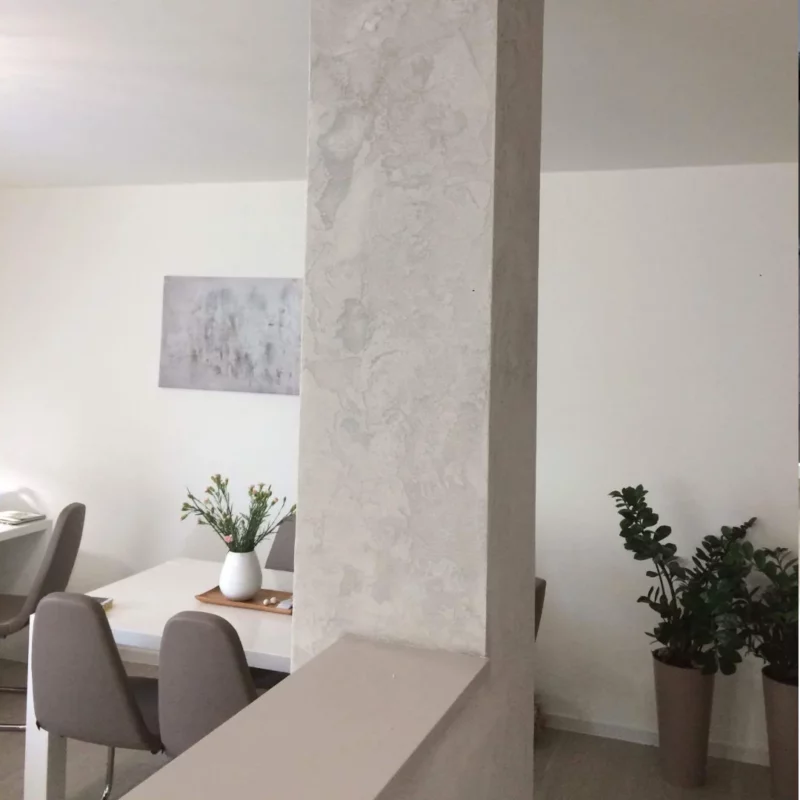 Aplikace betonové stěrky je řemeslný ruční proces, který kombinuje technickou přesnost s kreativním přístupem. Provádí se ručně, což umožňuje dosáhnout originálního vzhledu a individuální struktury každého povrchu. Výsledný efekt je vždy jedinečný – přesně takový, jaký si přejete.
