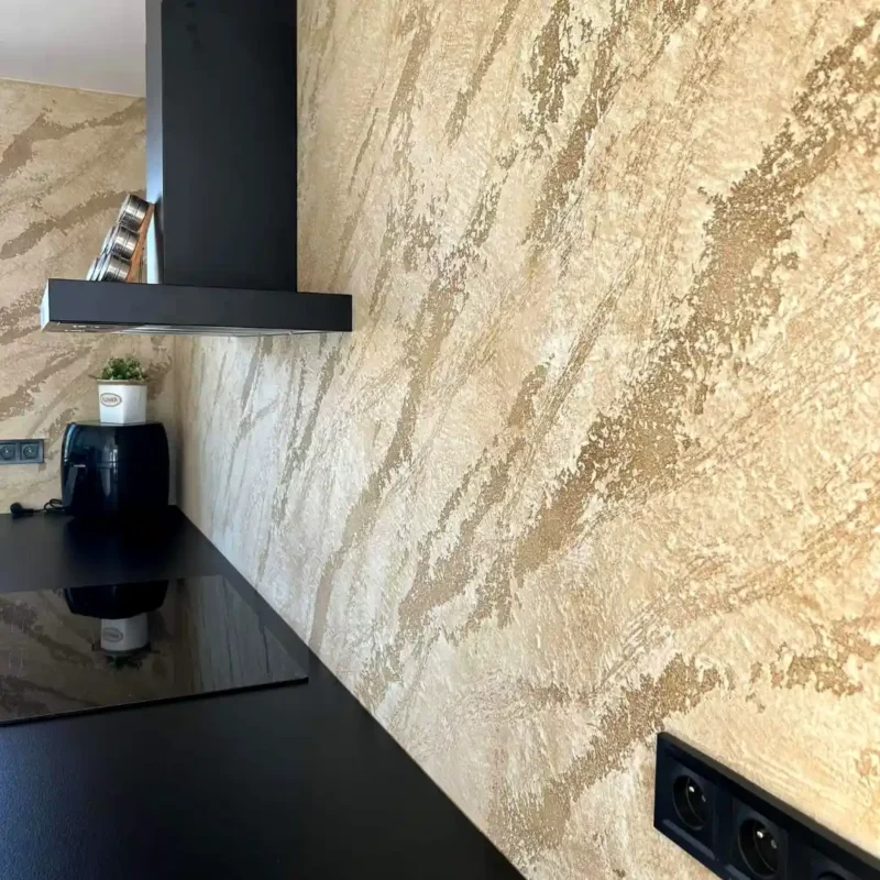 - Strukturovaný povrch: Pomocí různých aplikačních technik lze dosáhnout efektů jako jsou stínované nebo žíhané vlny, imitace dřeva či pravidelné a nepravidelné textury.