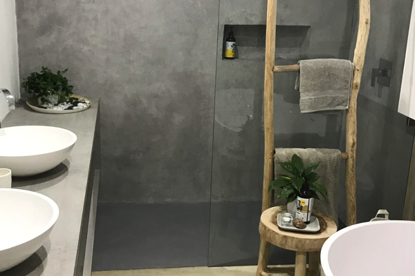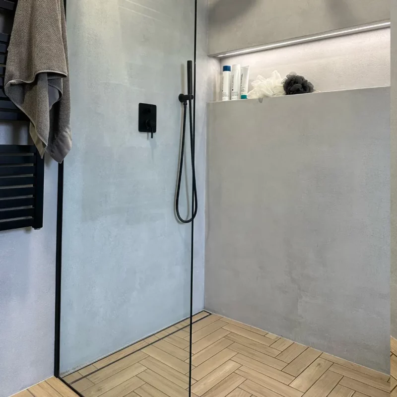 Objevte moderní designovou náhradu obkladů do sprchového koutu a koupelen. Betonová stěrka je praktická: