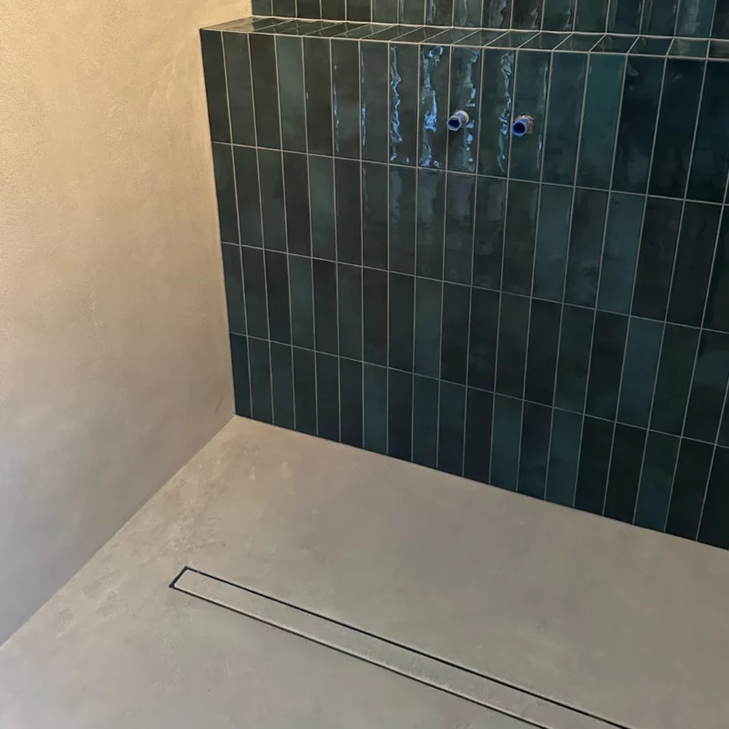 Ano, ale musí být použity speciální komponenty pro přípravu podkladu – správná výztužná vrstva ze stěrkovacího lepidla a perlinky + 2K hydroizolační stěrka a vyztužení rohů fleecovou bandáží. Betonová stěrka musí být opatřena dvousložkovým PUR (polyuretanovým lakem). Povrch je po vytvrzení plně voděodolný a vhodný i do zatížených zón. Právě díky bezešvé ploše bez spár se stěrka skvěle hodí do moderních sprch.