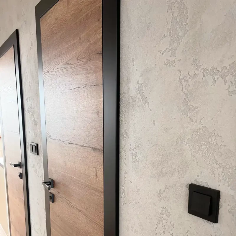 - Strukturovaný povrch: Pomocí různých aplikačních technik lze dosáhnout efektů jako jsou stínované nebo žíhané vlny, imitace dřeva či pravidelné a nepravidelné textury.
