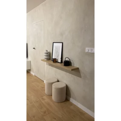 Aplikace betonové stěrky je řemeslný ruční proces, který kombinuje technickou přesnost s kreativním přístupem. Provádí se ručně, což umožňuje dosáhnout originálního vzhledu a individuální struktury každého povrchu. Výsledný efekt je vždy jedinečný – přesně takový, jaký si přejete.