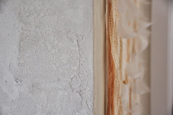 Co mě tedy vůbec nebavilo, bylo oblepování dřevěných stropních trámů a okrajů zdí. Domněnka, že stačí jednou nalepit a s finální stěrkou sundat, byla samozřejmě mylná. S odlepovanou páskou by se mohly odloupnout i všechny vrstvy stěrky až na původní materiál, což nikdo nechce. Takže oblepit a po zaschnutí vrstvy sundat. A znovu trámy oblepit a znovu sundat a tak pořád dokola, až to skoro pojmete jako každodenní rutinu a i když už máte dávno hotovo, stejně se každé ráno vzbudíte s nutkáním tu maskovací pásku zase vytáhnout. Pokud plánujete stěrku do nového domu, určitě doporučuji aplikaci ještě před položením podlah. Nám to tak naštěstí vyšlo, a tak jsem nemusela úzkostlivě bránit každý centimetr. Jak penetrace, tak samotný stěrkový materiál jsou hodně hrubé a plné malinkých kamínků. Čurbesu se při tom nadělá hodně (v mém případě dokonce víc než hodně) a když vám to zaschne na botách, jste pak jako chodící šmirgl papír.