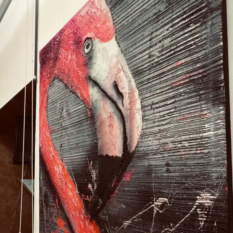 DIY obraz flamingo z betonove sterky a lazury , twinart