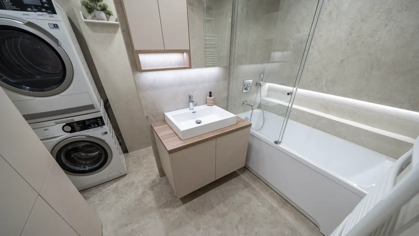 - 🛀 Stěna za vanou – voděodolná úprava se skvělou odolností vůči vlhkosti.