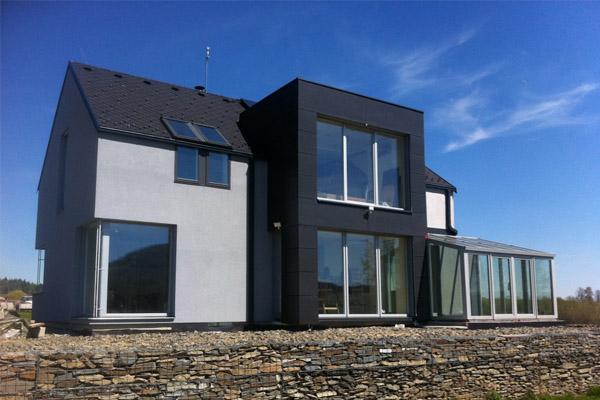 Povrch fasády domu může být moderní HLADKÁ ŠTUKOVÁ silikonová fasádní omítka.