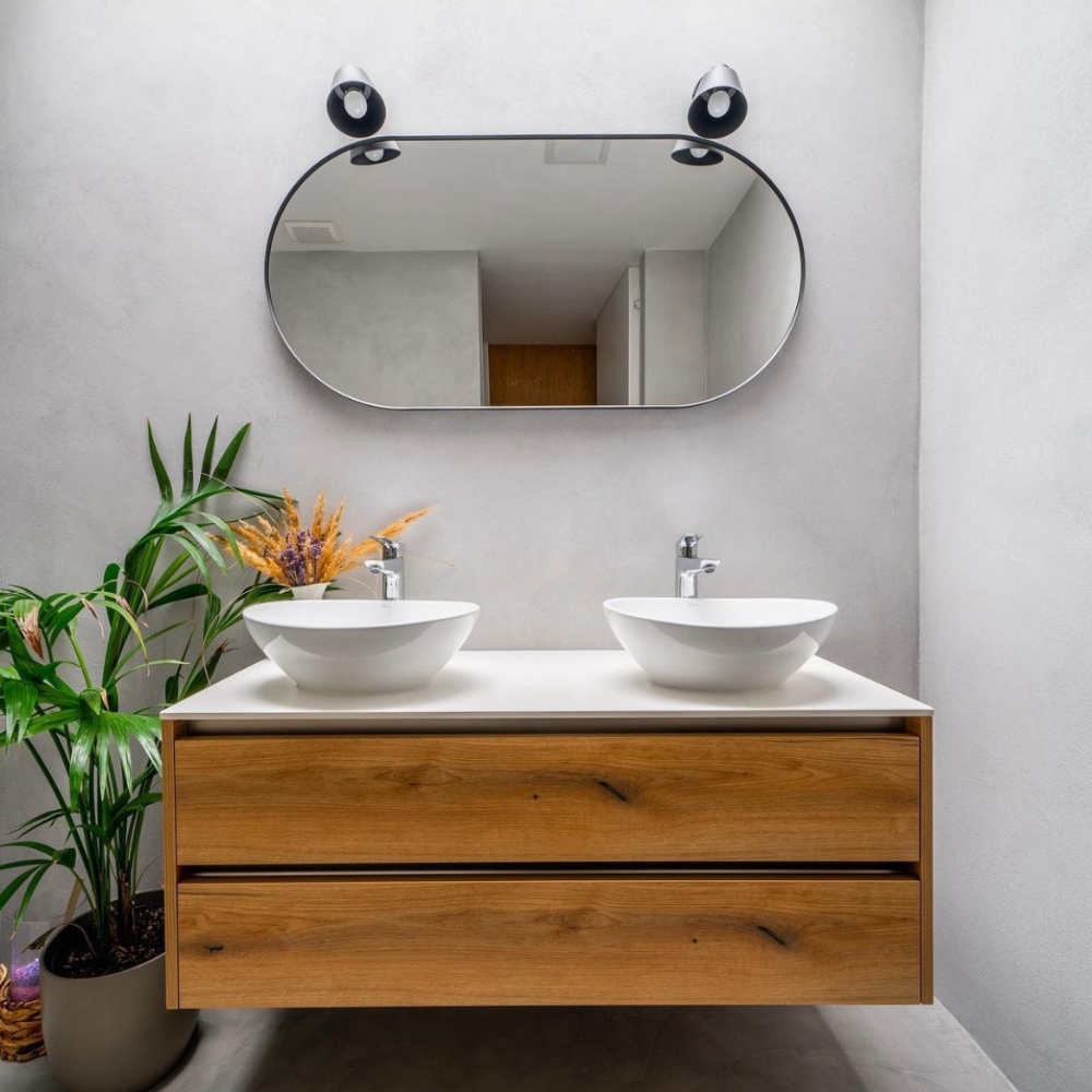 Sametově hladké nebo lehce strukturované betonové stěrky do koupelny zajišťují dokonalou rovnováhu mezi moderním designem a praktičností. Tyto stěrky přinášejí do vaší koupelny jedinečný vzhled a pocit luxusu. Každá betonová stěrka je ručně aplikována a vytváří tak povrch s jemnými texturami a hladkými liniemi, které zachycují světlo a vytvářejí sofistikovanou atmosféru.