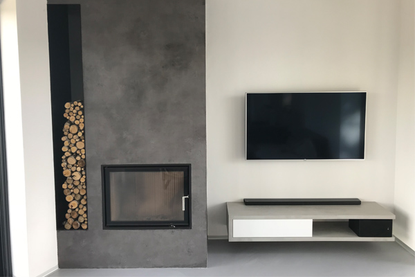 Betonové stěrky na krb mohou být provedeny v různých odstínech šedé a mohou obsahovat i různé efekty, jako je tónování nebo jedinečné vzory. To vám umožní přizpůsobit vzhled krbu vašemu osobnímu stylu a celkovému interiéru místnosti.