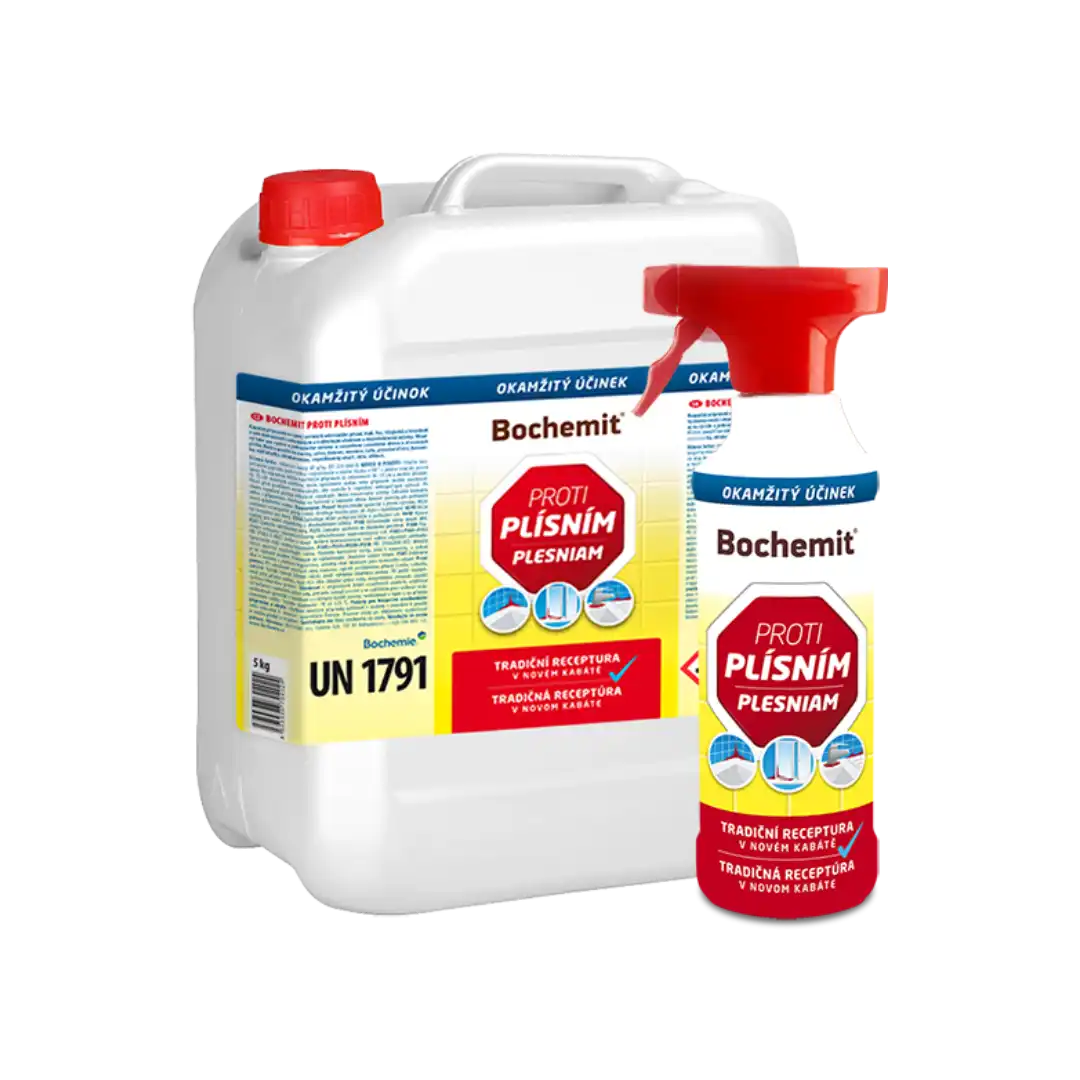 místa nastříkejte Bochemit Proti plísním ze vzdálenosti 10–15 cm a nechte působit. Po 15–20