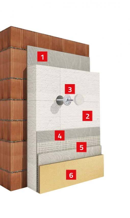 Povrchová úprava: Systém umožňuje použití různých typů fasádních omítek, včetně akrylátových, silikátových, silikonových a dalších, což zajišťuje estetický vzhled a ochranu fasády.