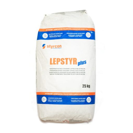 LepStyr plus je cementová lepící a štěrkovací / armovací tmel / stěrka s výbornou paropropustností vysoká prodyšnost max µ = 11, dlouhým otevřeným časem a s pomalejším náběhem pevnosti. Obsahuje křemičité písky, cement a hodnotné hydraulické pojiva. Používá se na lepení a štěrkování tepelněizolační desky STYRCON® o podklad a na armování výztužné vrstvy se sklotextilní síťkou na desky STYRCON®.