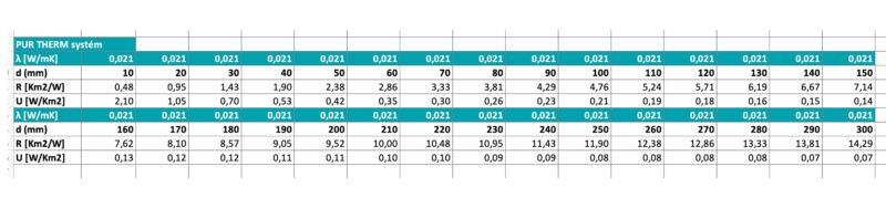 Tabulka fyzikálních veličin, tepelný odpor R, součinitel tepelného prostupu U a součinitel tepelné vodivosti Lambda