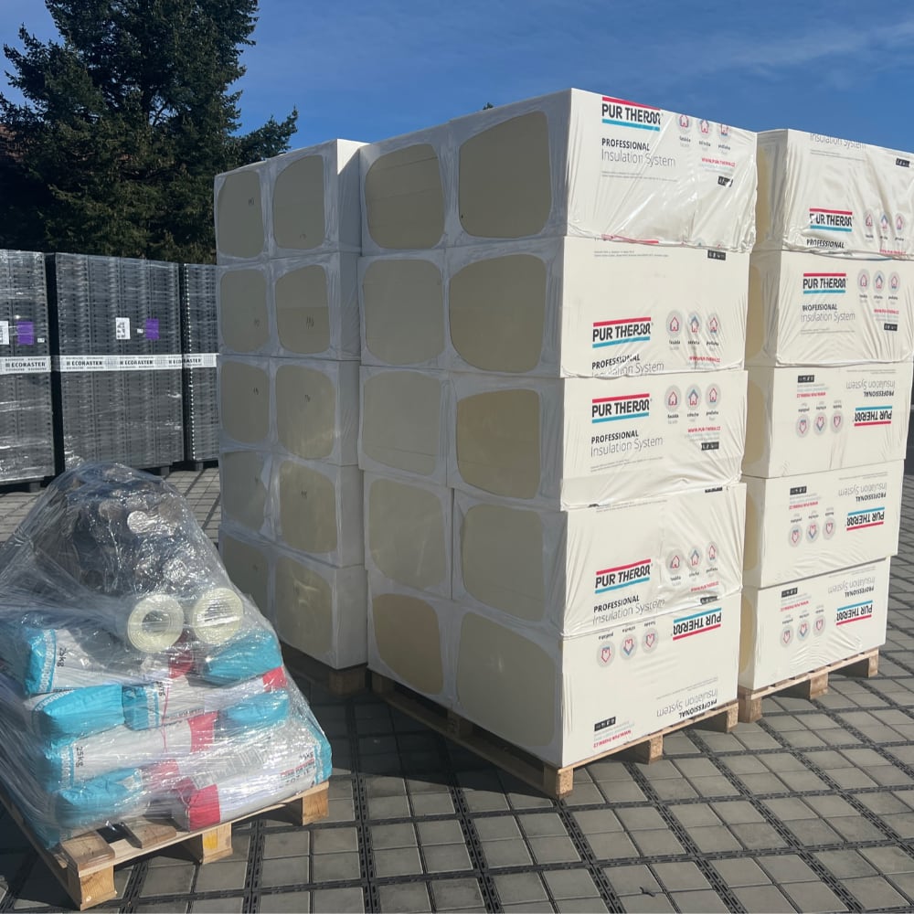 - Slunce by nemělo přímo svítit na PUR desky při aplikaci. Fasáda by měla být zakryta alespoň sítí. PUR desky mohou lehce měnit barvu při působení UV paprsků.