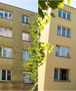 Kompletní regenerační sada pro očištění a nátěr fasády. Ideální pro aplikaci svépomoci. 1 sada stačí na očištění, impregnaci a fasády. Odstín fasádní barvy je bílá.