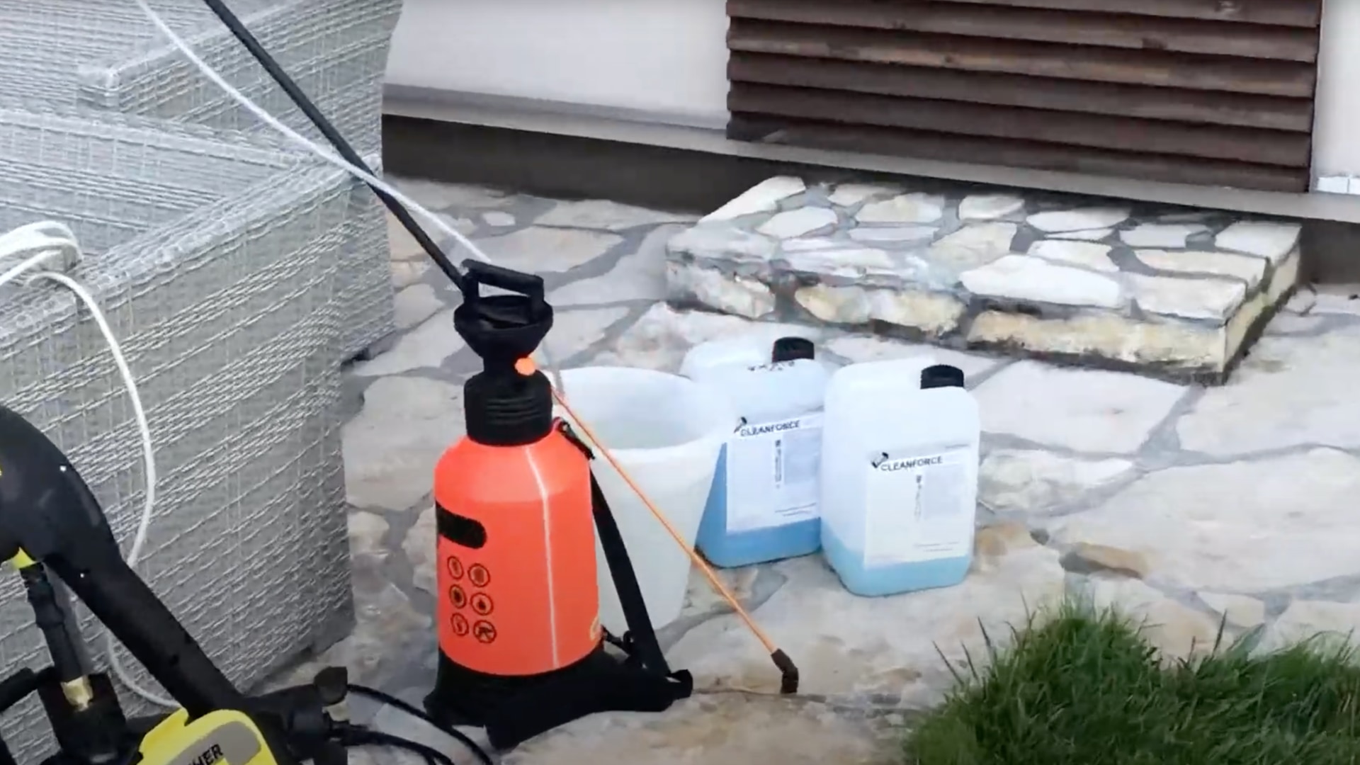- Aplikace: Naředit v poměru 1:20 s pitnou vodou. Nastříkat, nechat působit (délka je závislá na stupni znečištění), možnost mechanicky kartáčovat nebo stírat, následně omýt čistou vodou, ideální tzv. vapkou. U citlivých povrchů doporučujeme před použitím vyzkoušet na vhodném místě. Hliník a barevné kovy čistit pouze s ředěním 1:40. Pozor!!! Nikdy nepoužívejte na sklo. Tento čistič na vodní bázi obsahuje povrchově aktivní látky, které jsou biologicky odbouratelné do 14 dní až 96%. Doporučujeme aplikovat v teplotě od + 10° C do +25° C. Při extremně špinavé fasádě (např. v průmyslových a smogových oblastech) doporučuje postup aplikovat. Celkem 2 x aplikovat CLEANFORCE čistící koncentrát a použít mechanické kartáčování.