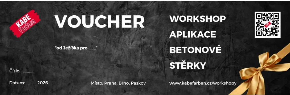 Udělejte své drahé polovičce radost a věnujte voucher na workshop „aplikace betonové stěrky svépomoci“. Voucher ve formátu .pdf Vám bude zaslán na email.
