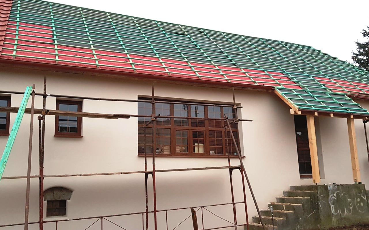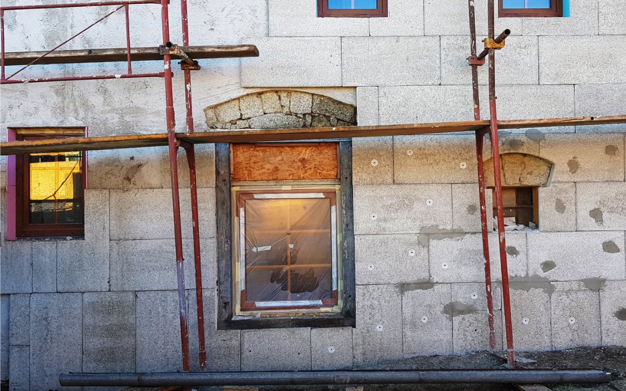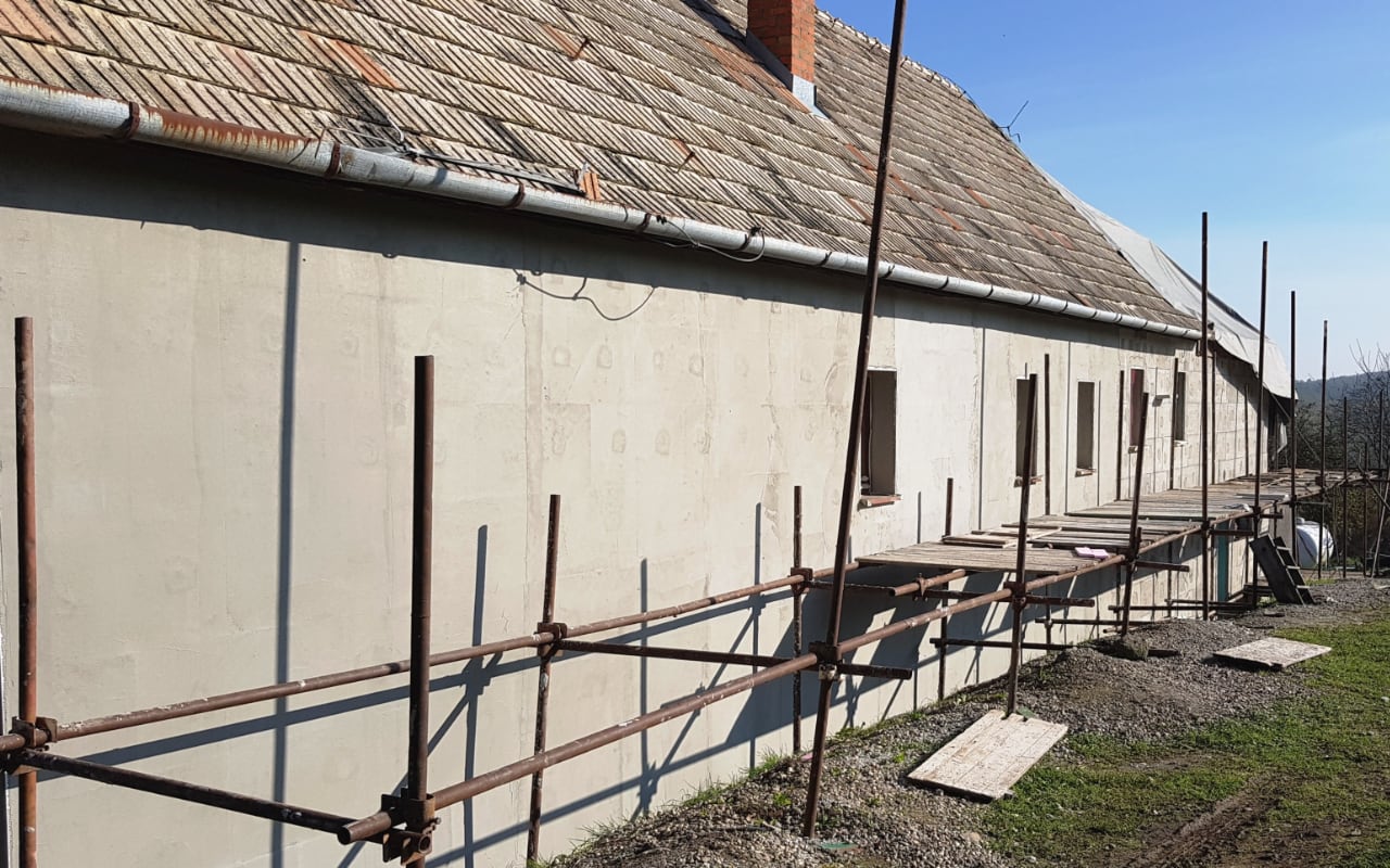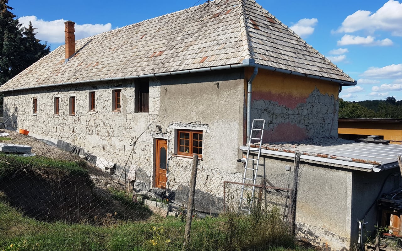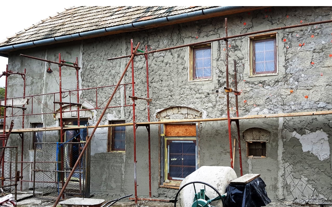 Komplexní rekonstrukce – sanace, zateplení rodinného kamenného domu postaveného ze sopečného popela.