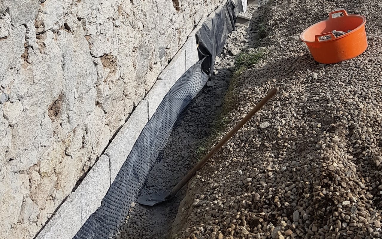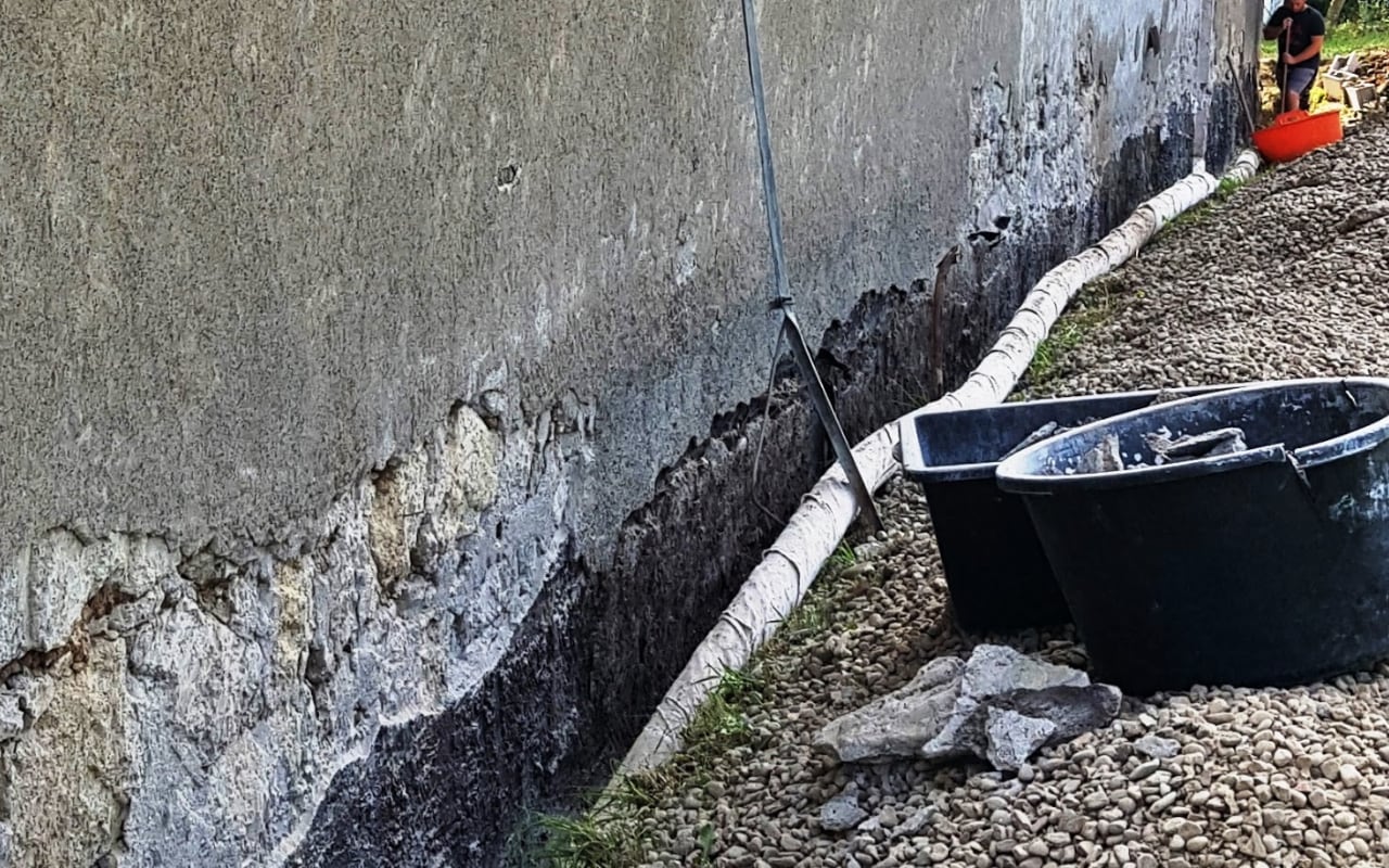 - vnější sanační zateplení vlhkého kamenného zdiva kolem celého domu