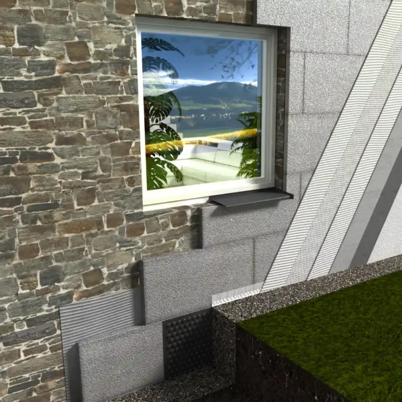 - Dobrá tepelná izolace: STYRCON sanační deska má dobré tepelně izolační vlastnosti, což pomáhá snižovat tepelné mosty na soklu a zlepšuje celkovou energetickou efektivitu domu. λd = 0,047 W/mK