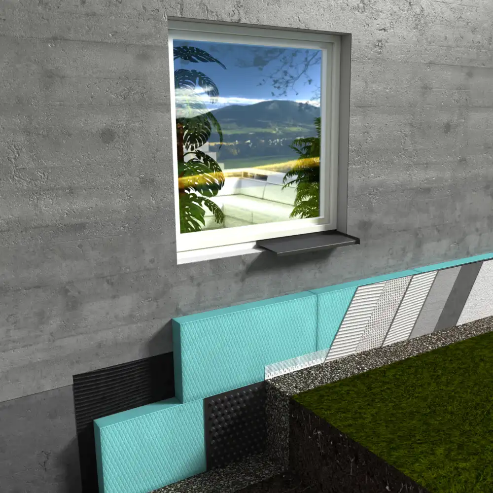 - Kompatibilní s polystyrenem, XPS, soklovou deskou či perimetrem