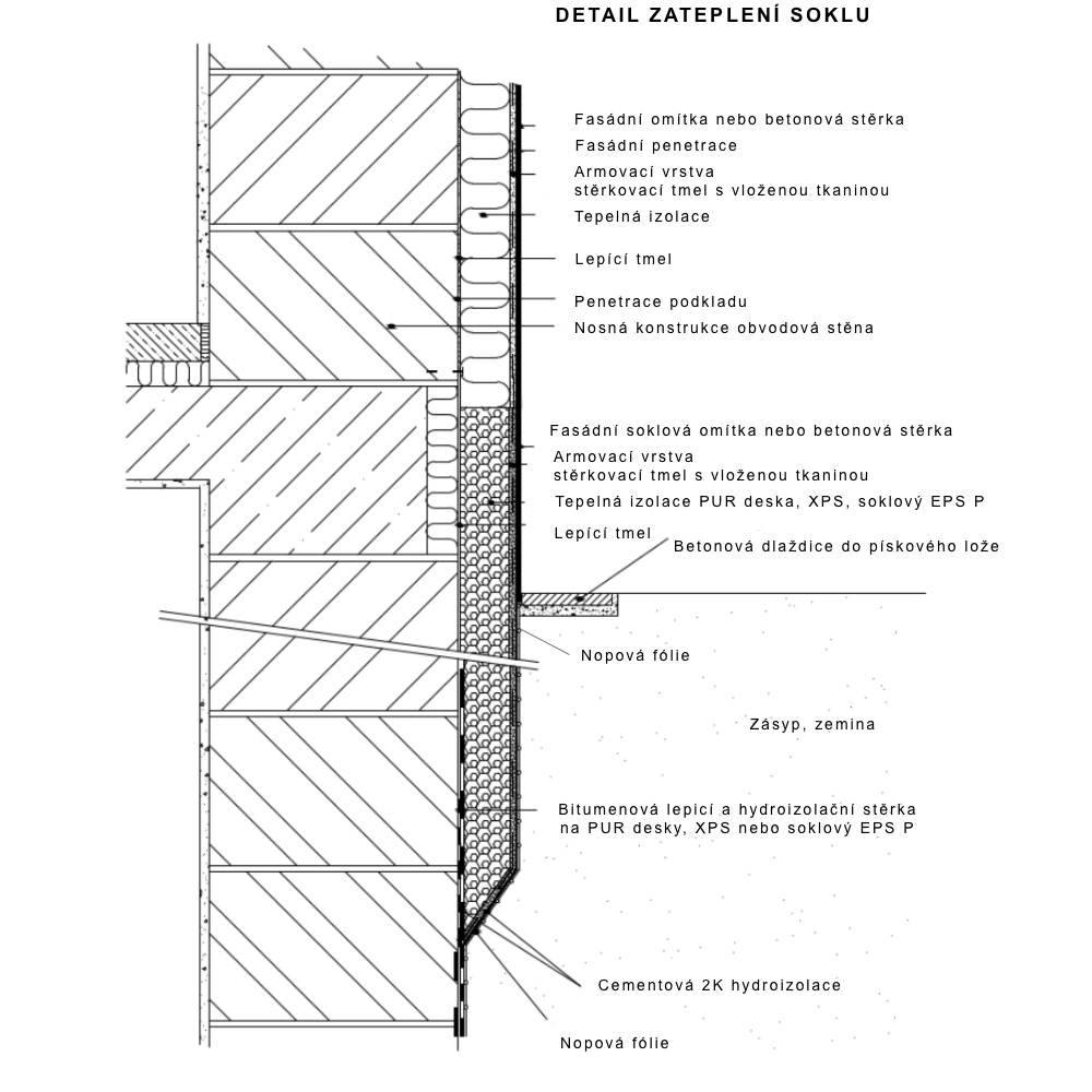 Doporučená skladba pro zateplení soklu PUR deskou